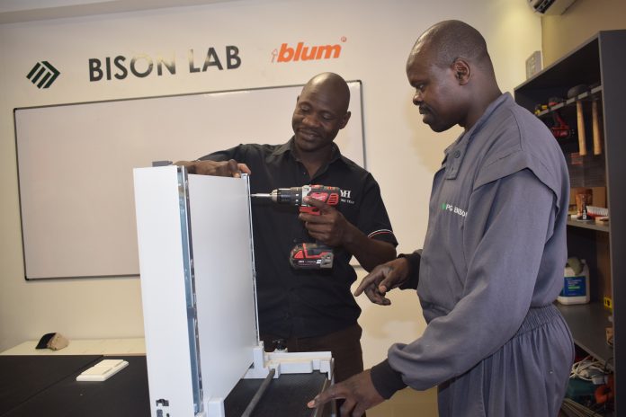 PG Bison, one of the largest manufacturers of MDF and particleboard furniture components in Kenya has in the recent years trained more than 600 artisans to design, fabricate and install kitchen cabinets, wardrobes, shop fit-outs and office furniture, and use proper tools for the assembly and installation work.